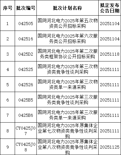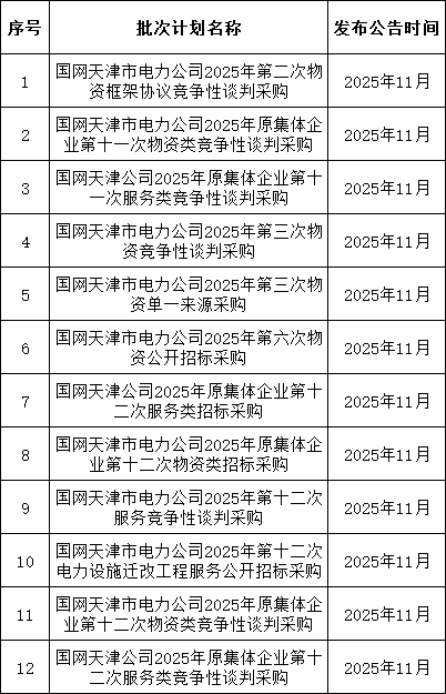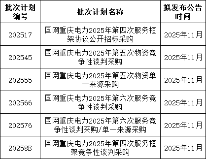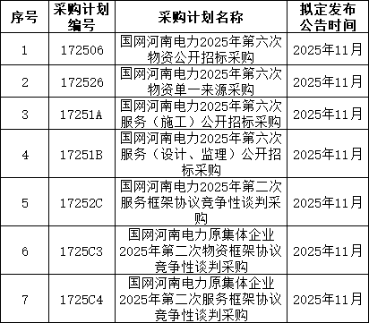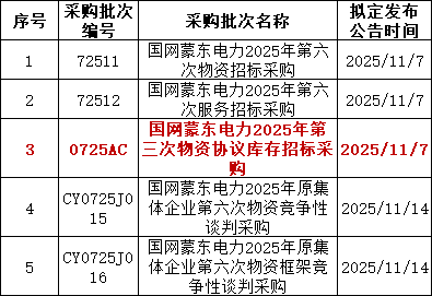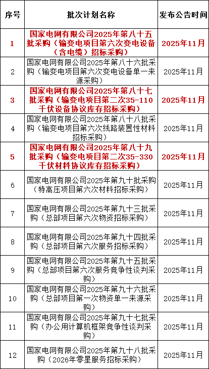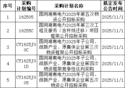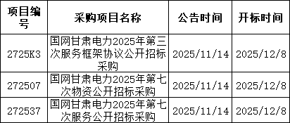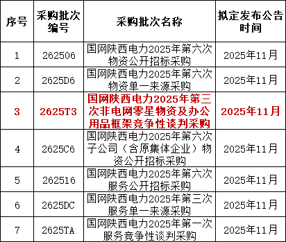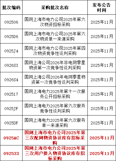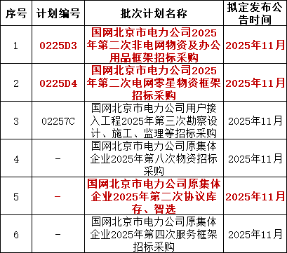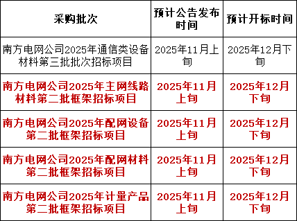 3、南方电网公司2025年配网材料第二批框架招标项目;