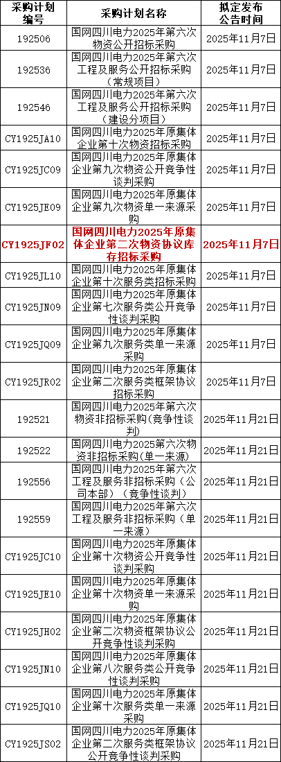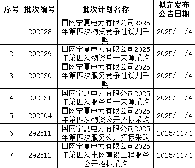 1、原计划10月应发布的:国网宁夏电网零星物资采购,截止目前还未发布;