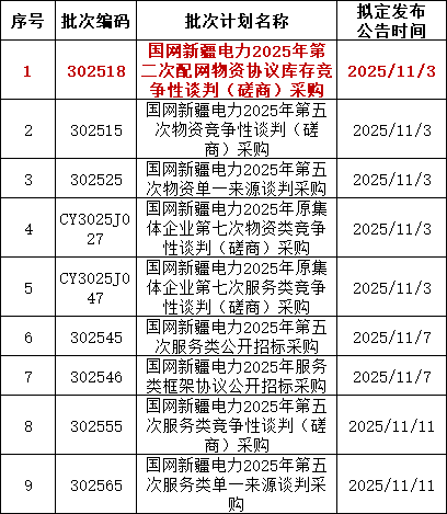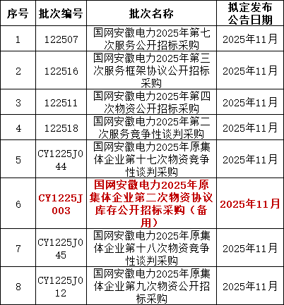 所以11月计划发布的应有9个批次:国网安徽、北京、湖北、新疆(原集体)、四川(原集体)第二次协议库存;国网上海、辽宁第三次协议库存招标采购。