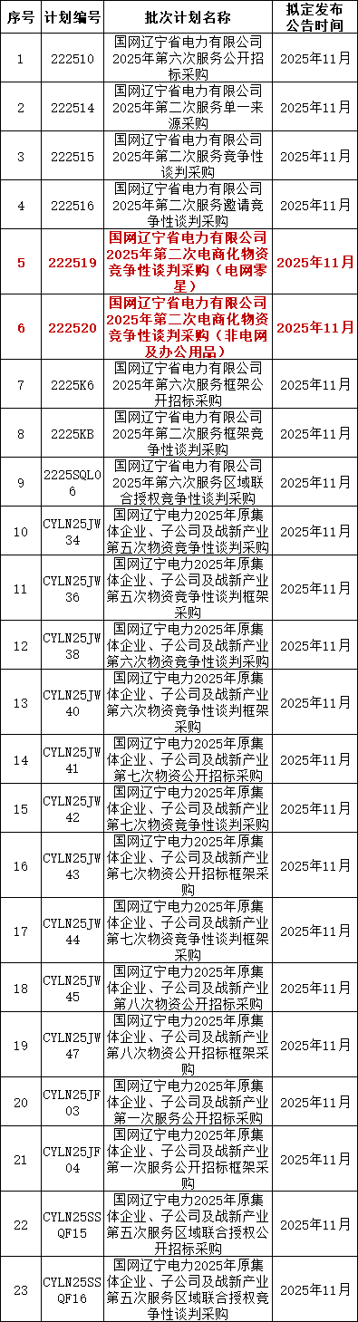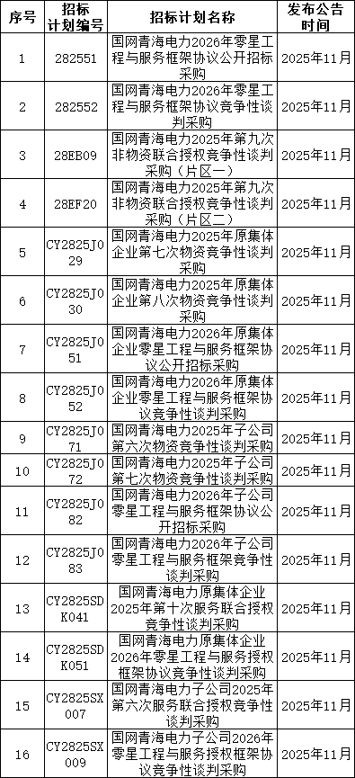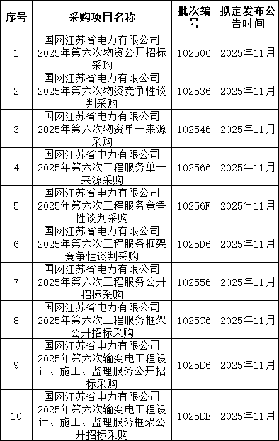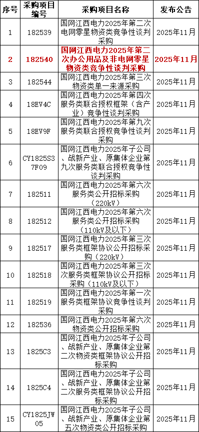 1、南方电网公司2025年主网线路材料第二批框架招标项目;