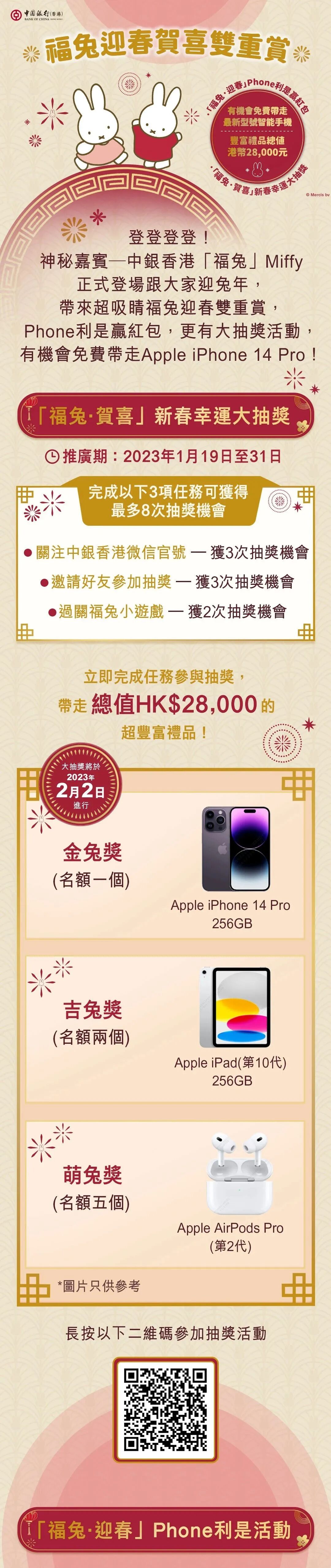5. 抽獎結果將於2023年2月2日中銀香港微信官號內公佈,抽獎禮品如下: