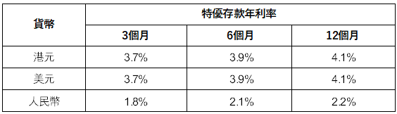 2. 特選小企客戶於推廣期內成功透過 iGTB NET 以「合資格新資金結餘」港幣1萬元/美元1仟元/人民幣1萬元或以上開立「新資金特優定期存款」,方可享年利率如下: