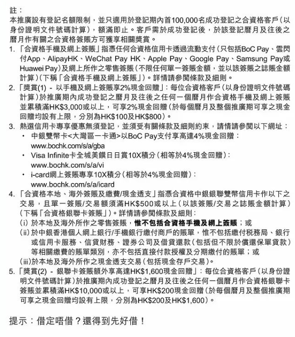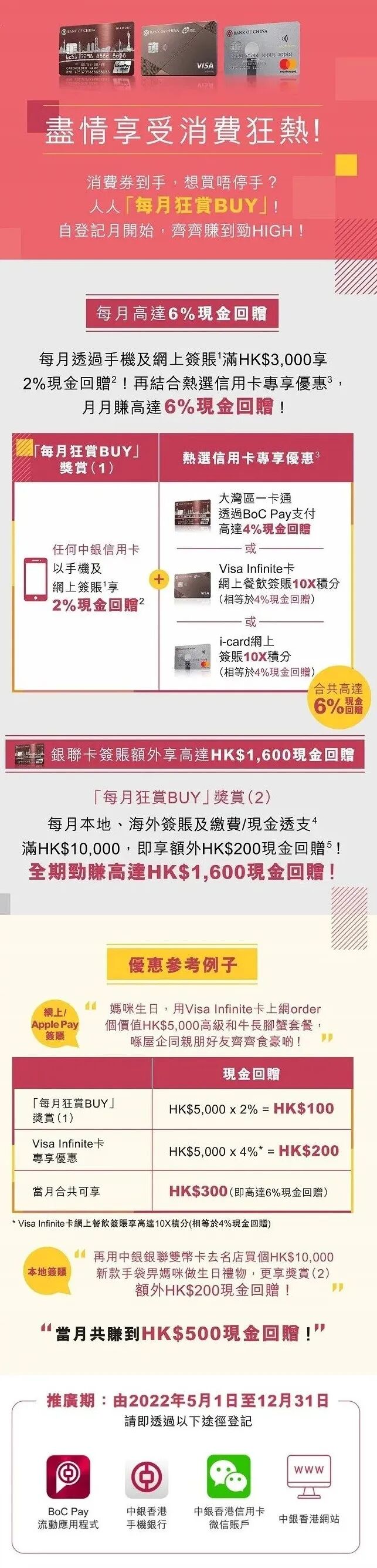 每月狂賞BUY,食買玩開心賺不停!用中銀信用卡每月透過手機及網上簽賬可賺高達