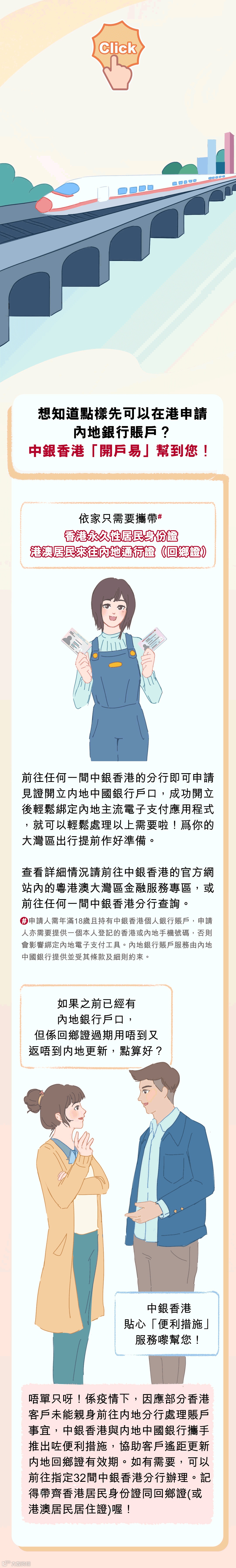 中國銀行(香港)有限公司(「中銀香港」)提供的大灣區「開戶易」服務(「本服務」)只適用於個人銀行客戶。
