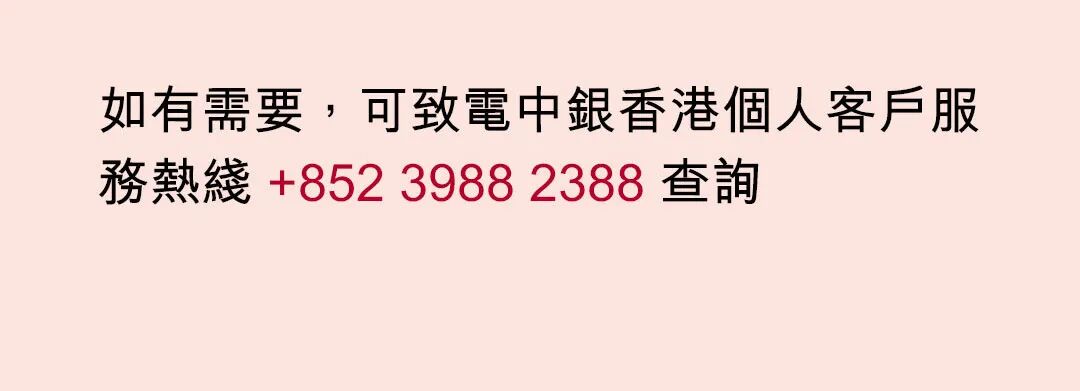 上述產品、服務與優惠受有關條款約束,詳情請參閱相關宣傳品或向中銀香港職員查詢。