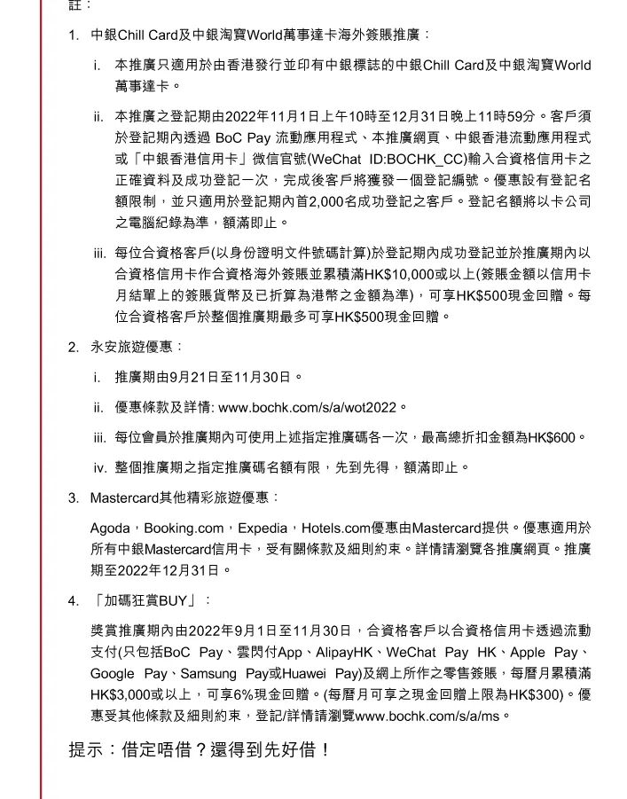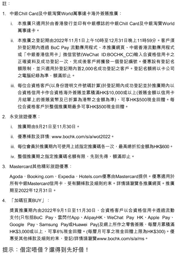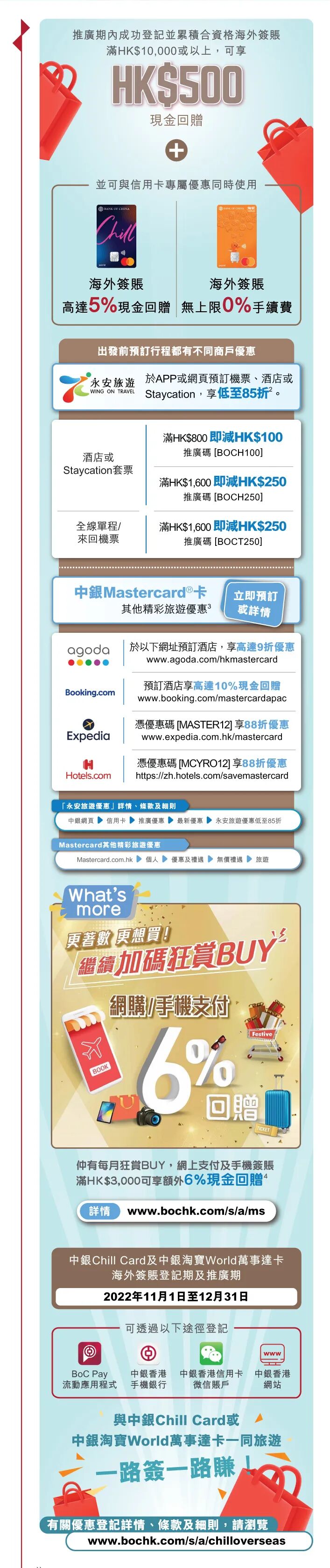 海外簽賬HK$500現金回贈 | 中銀Chill Card 及淘寶World MasterCard 專享推廣