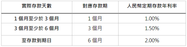 2.以上人民幣定期存款年利率是以中銀香港在2021年10月1日公佈的定期存款年利率為示例,僅供參考用途,實際年利率將根據中銀香港不時公佈的為準。