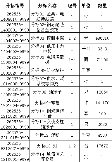 2、装置性材料:电缆、金具、铁附件、保护管、绝缘子等