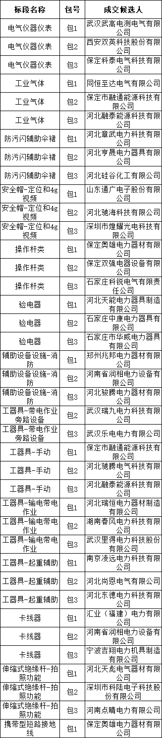 国网河北电力2025年新增第二次物资类框架协议竞争性谈判采购(非电网零星物资)项目评审工作已经结束,现将评审委员会推荐的成交候选人予以公示,公示期1日。应答人或者其他利害关系人若对评标结果有异议的,请在成交候选人公示期间以书面形式提出。