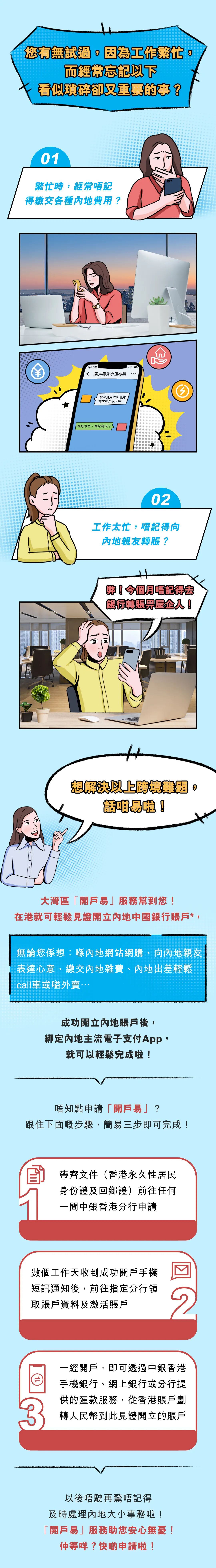 #申請人需年滿18歲且持有中國銀行(香港)有限公司(「中銀香港」)個人銀行賬戶,申請人亦需要提供一個本人登記的香港或內地手機號碼,否則會影響綁定內地電子支付工具。內地銀行賬戶服務由內地中國銀行提供並受其條款及細則約束。