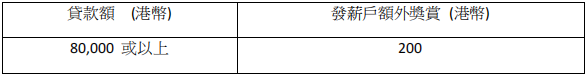 • 發薪戶額外奬賞可享額外高達港幣 200 奬賞: