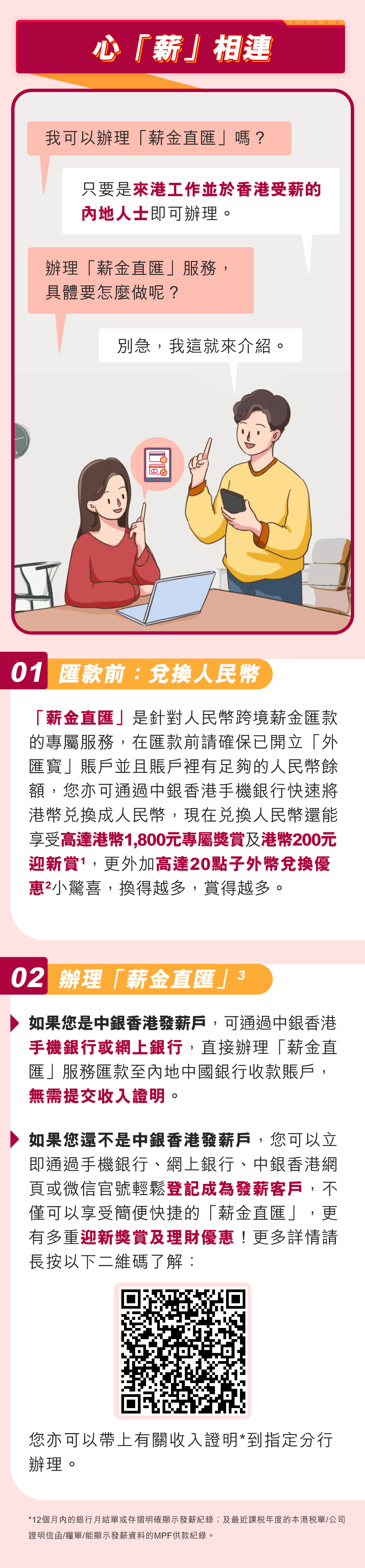 ■ 透過中銀香港分行、網上銀行或手機銀行辦理「薪金直匯」*