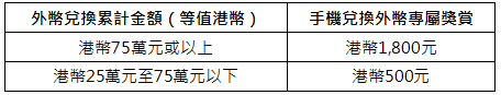 1a. 特選跨境客戶專享高達港幣1,800元手機銀行兌換外幣獎賞: