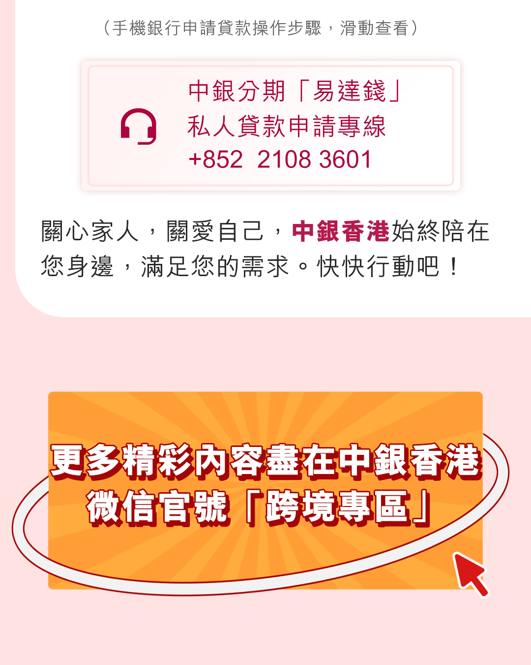 ● 上述中銀分期「易達錢」不適用於中銀分期「易達錢」的現有客戶及中銀香港員工。