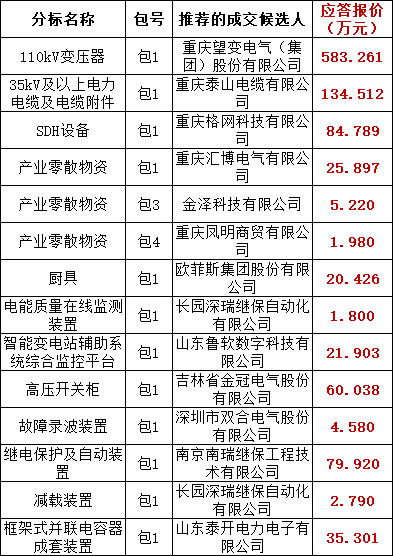 国网重庆电力2025年原集体企业及子公司第八次物资竞争性谈判采购项目评审工作已经结束,依据《中华人民共和国招标投标法实施条例》、《招标公告和公示信息发布管理办法》对成交候选人公示的规定,现将评审委员会推荐的成交候选人予以公示: