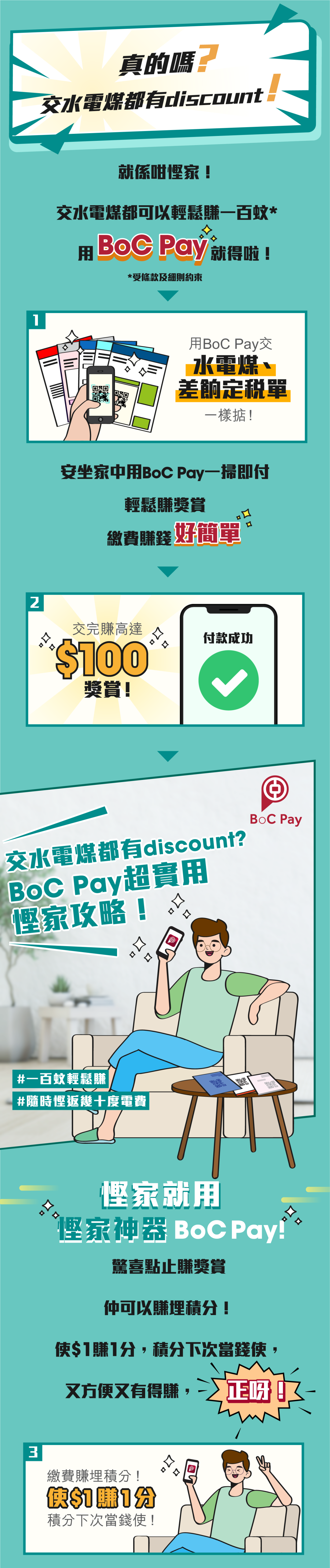 12. BoC Pay、Smart Account及支付賬戶由中銀香港持有,卡公司為繳費奬賞推廣之 主辦單位之一。中銀香港負責將獎賞誌入Smart Account及/或支付賬戶的安排及運 作。