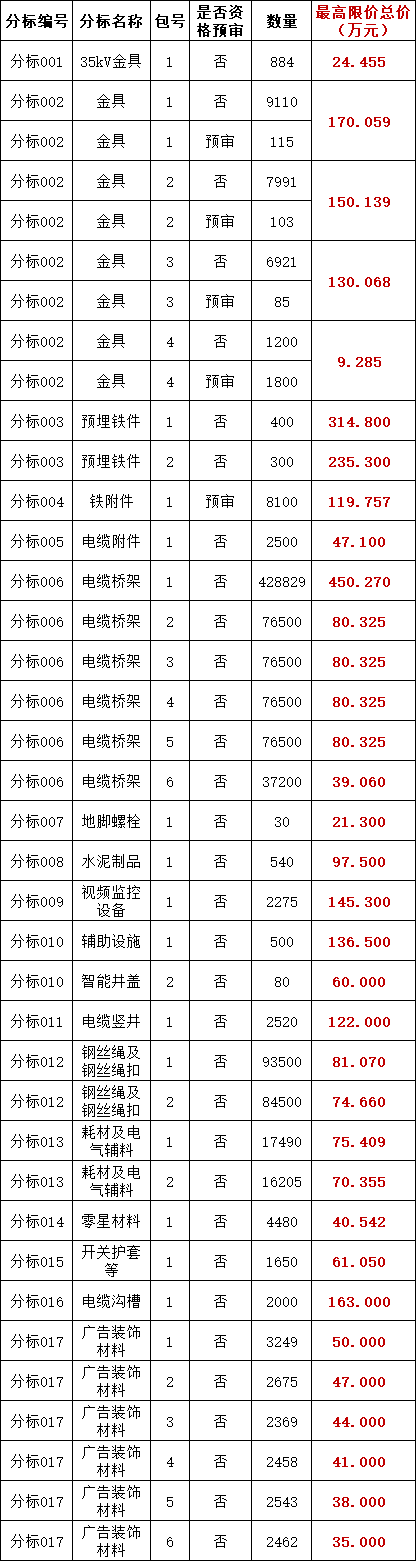 2、装置性材料:电缆、金具、铁附件、保护管、绝缘子等