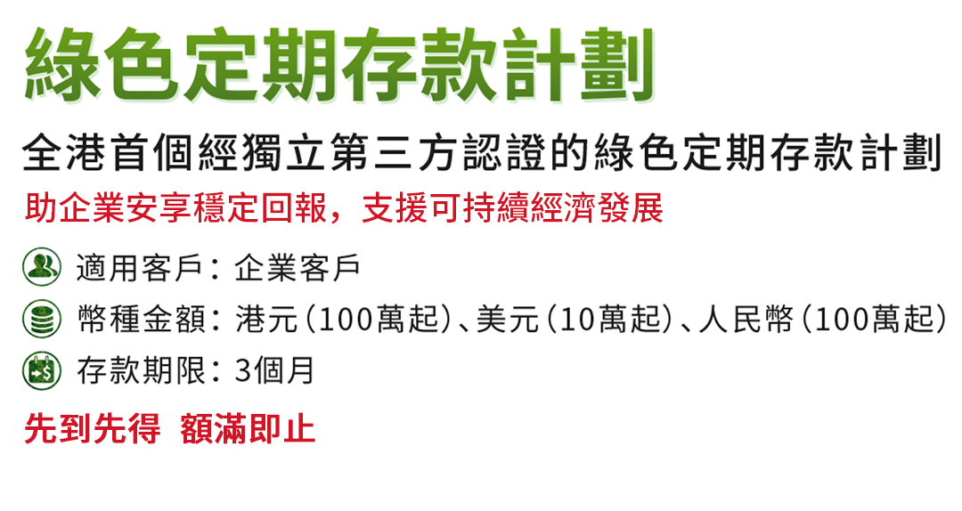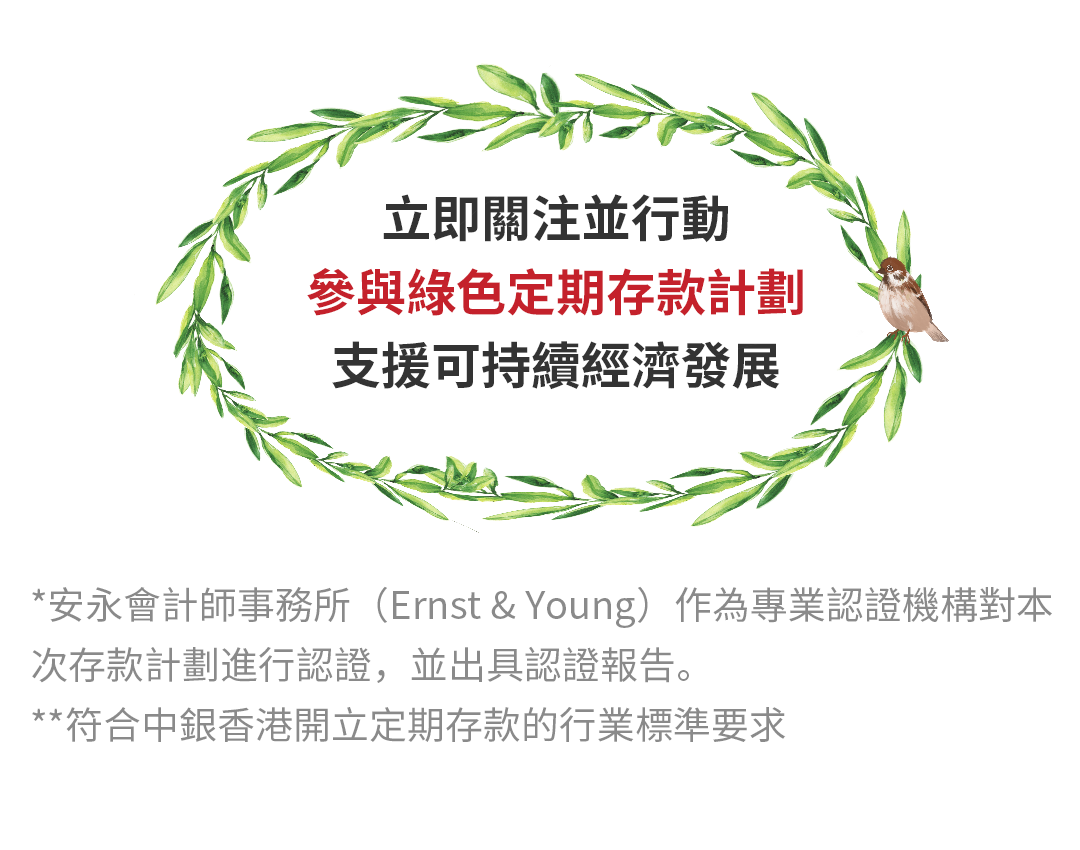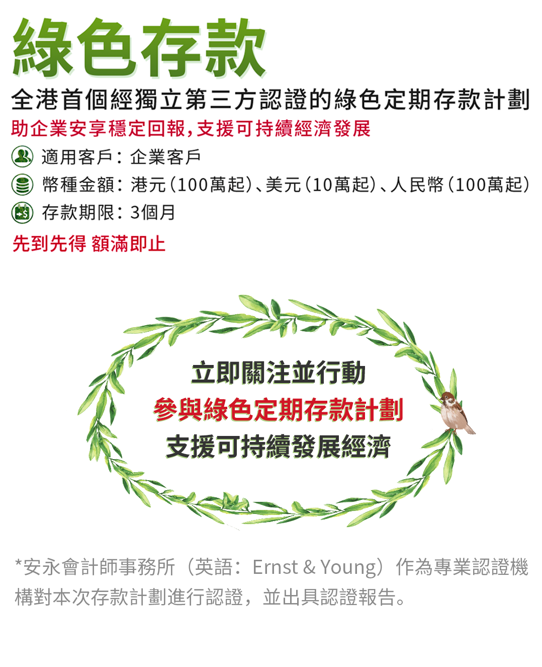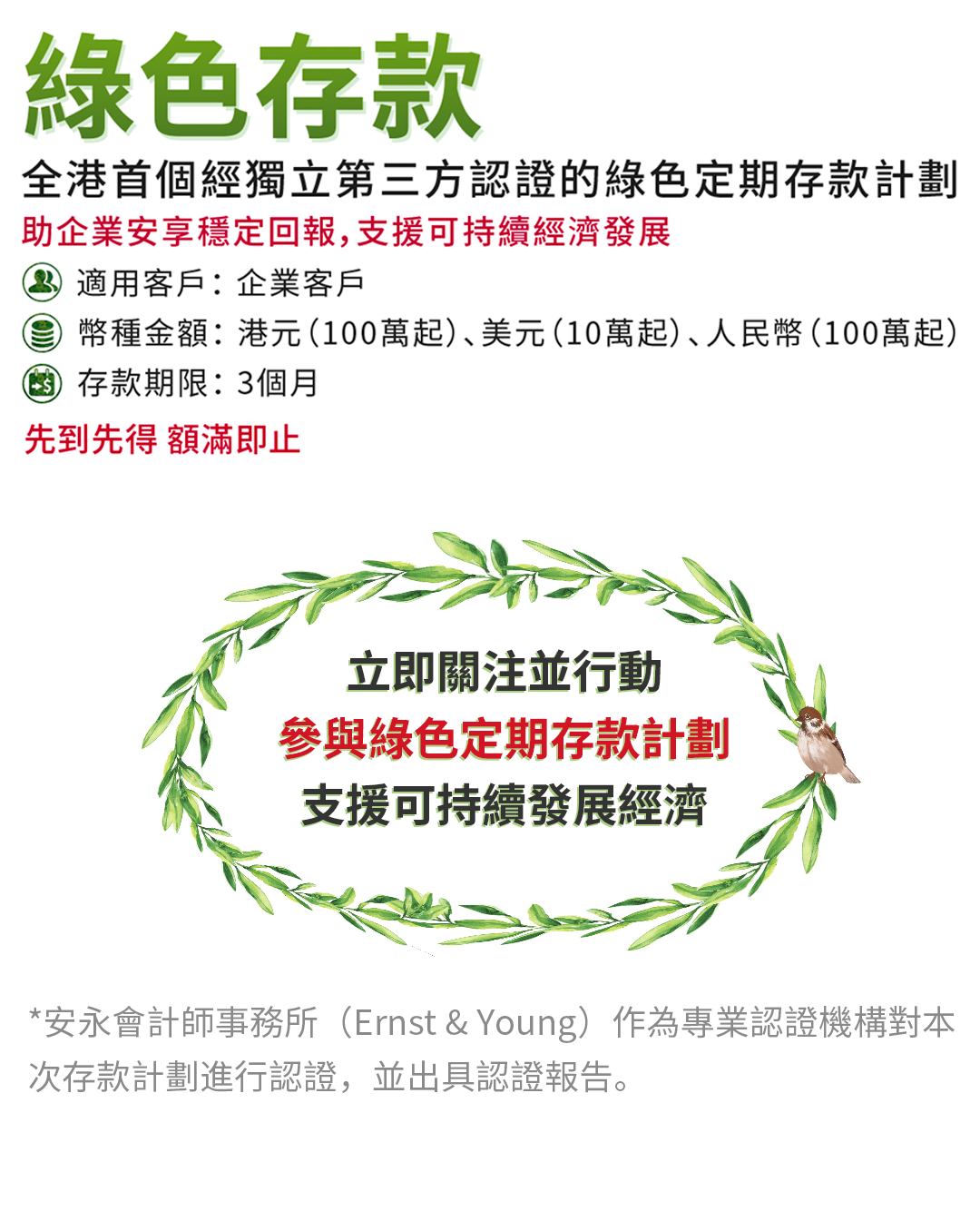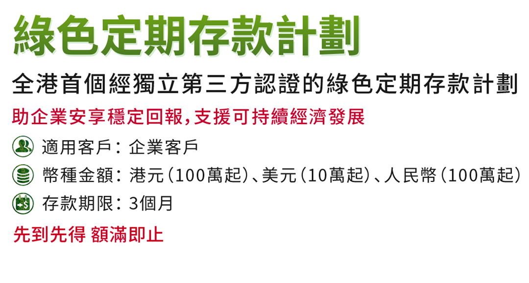 參與綠色定期存款計劃,為可持續經濟發展出一份力