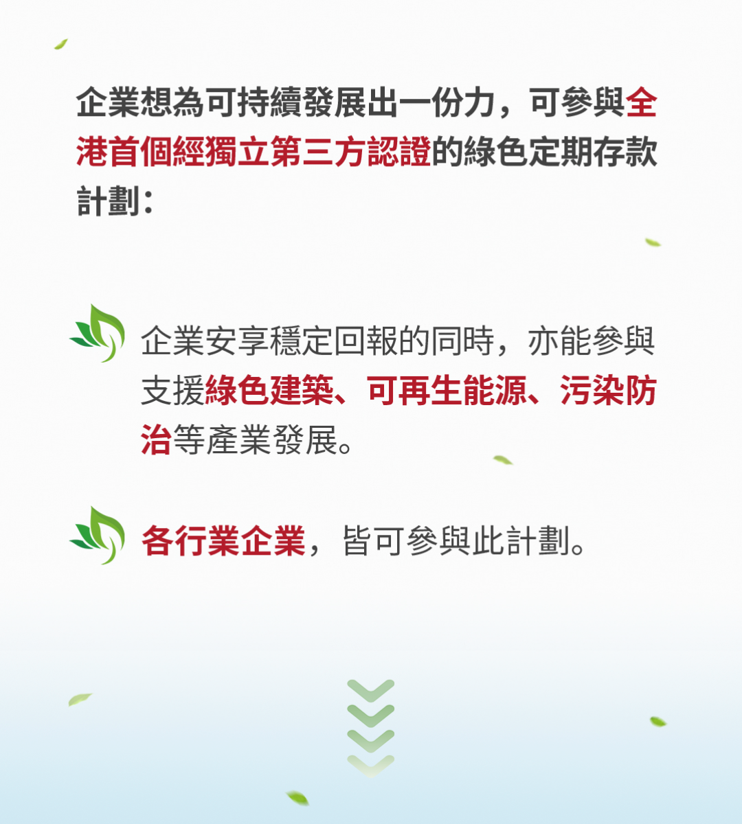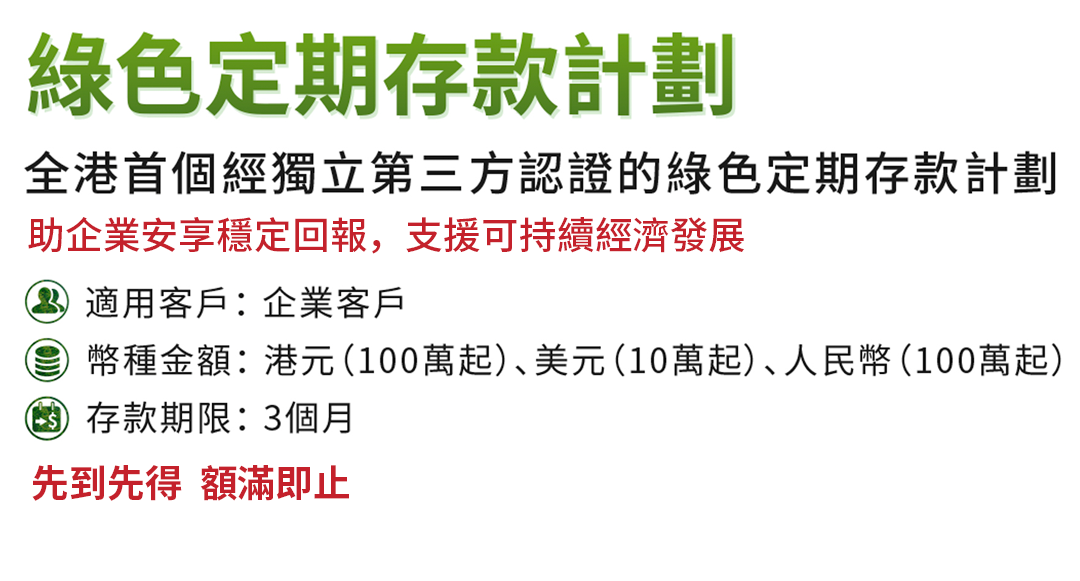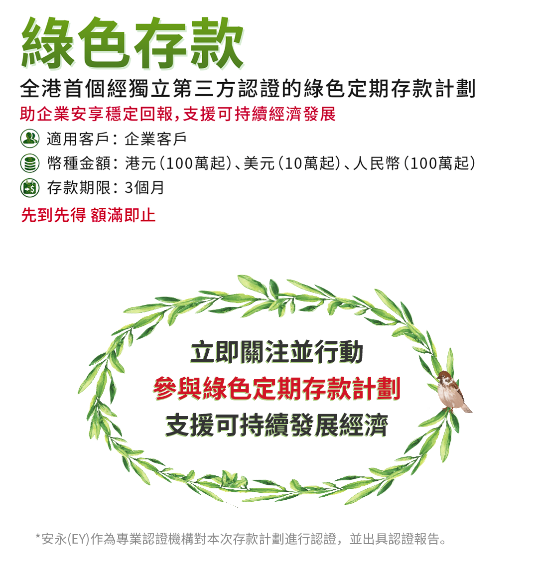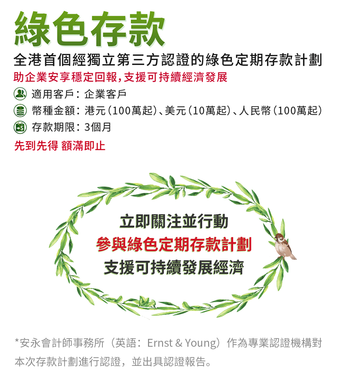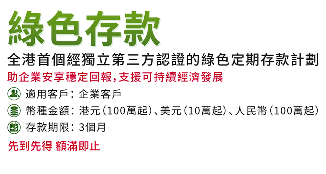 參與綠色定期存款計劃,為可持續經濟發展出一份力