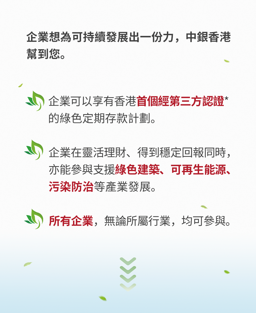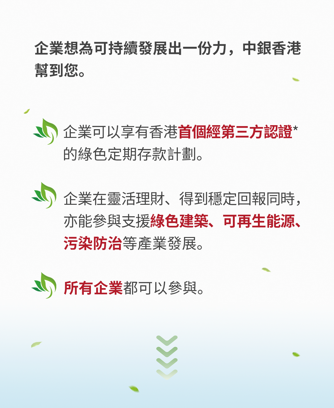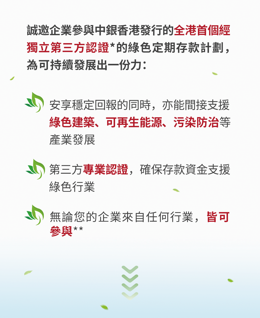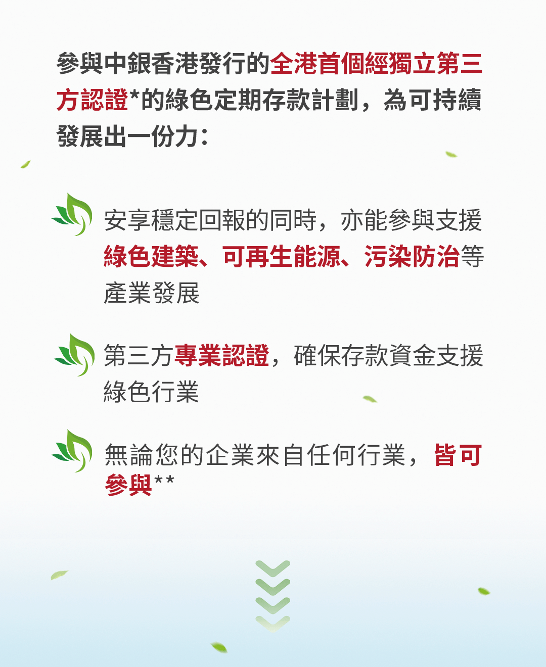 參與綠色定期存款計劃,為可持續經濟發展出一份力