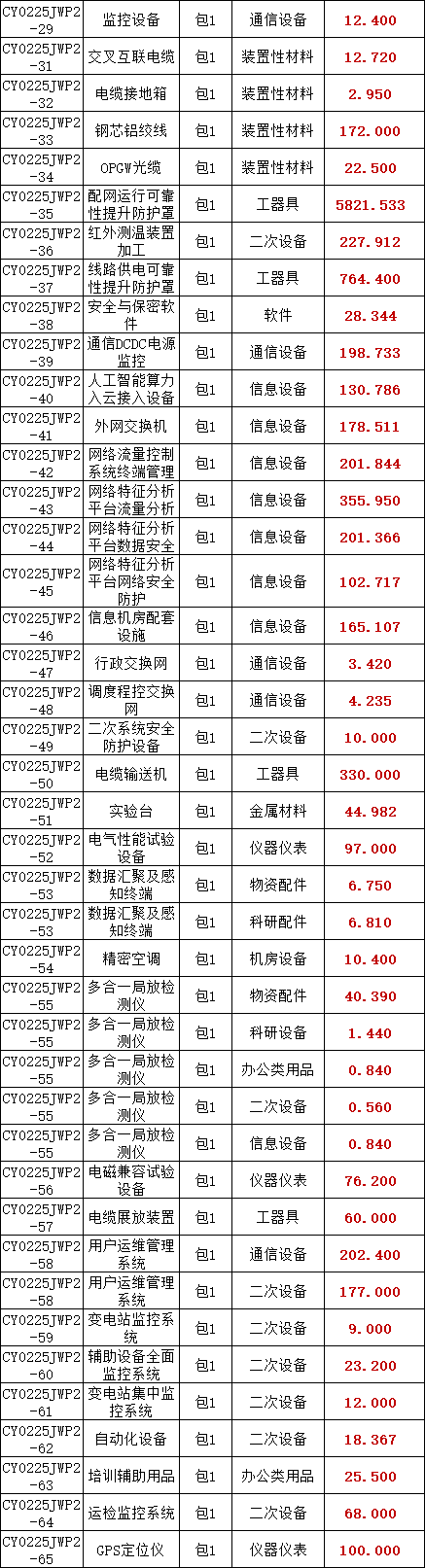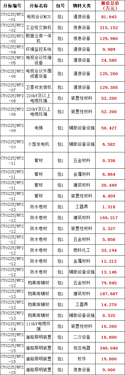 2025年第三次物资批次公开招标采购项目