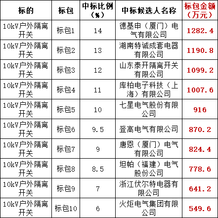 10kV户外隔离开关框架招标