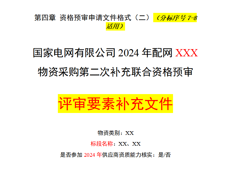 2、本次补充的评审要素将应用于国家电网有限公司2025年配网物资协议库存第二次区域联合采购。
