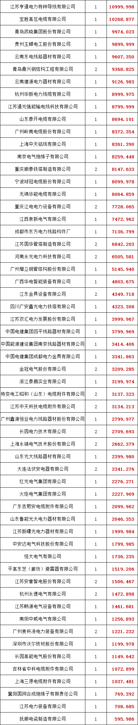 2、35kV-500kV铝包钢芯铝绞线,招标金额:206623万元;