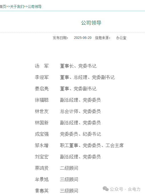 国网福建省电力有限公司原副总经理、党委委员黄惠英转为三级顾问