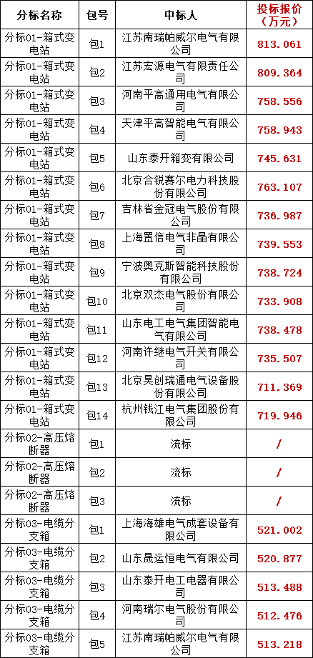 国网陕西省电力有限公司2025年第二次配网物资协议库存集中招标采购项目中标候选人公示活动已经结束,现将中标结果公告如下:
