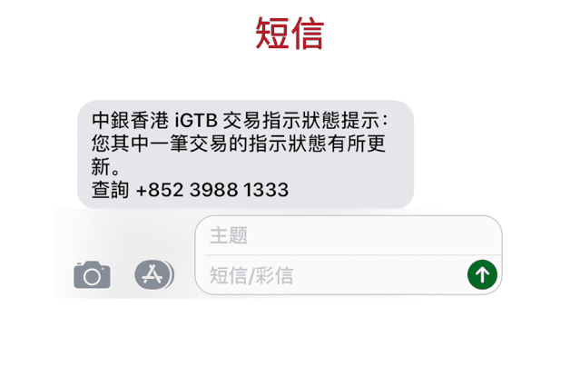 通過四種渠道(短信、電郵、推送通知和系統收件箱)即時接收提示,安心省心。