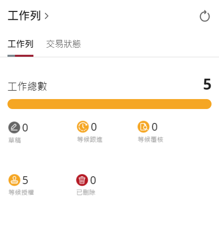每天開始工作,登入工作列模組,所有待處理交易一目了然,第一時間處理緊急交易,一筆不耽擱。
