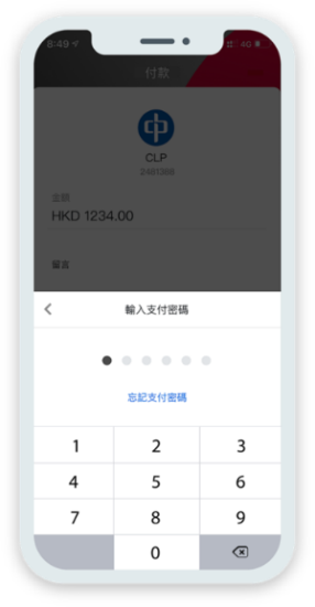 輸入支付密碼或進行生物認證,即完成賬單繳付
