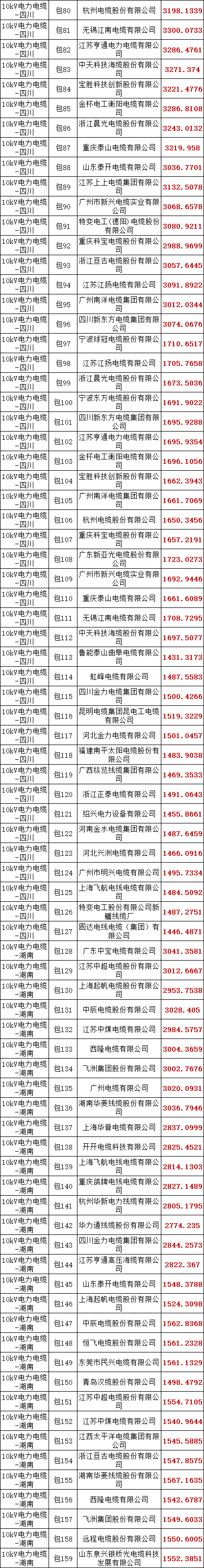 国家电网有限公司2025年华中、川渝区域第一次联合采购10kV电力电缆协议库存招标采购的评标工作已结束,依据《中华人民共和国招标投标法实施条例》、《招标公告和公示信息发布管理办法》对中标候选人公示的规定,现将评标委员会推荐的中标候选人予以公示,公示期3日。