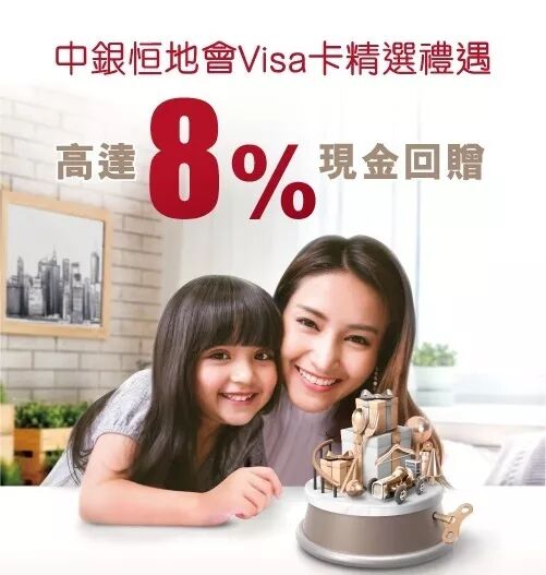 仲諗?快啲成為「中銀恒地會Visa卡」嘅客戶,除左可以享受不時為您預備嘅精彩禮遇,同時亦會自動成為恒地會會員,盡情享用「恒基兆業地產集團」嘅多項專貴餐飲同旅遊優惠!
