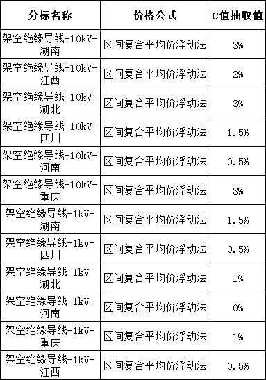国家电网有限公司2025 年华中、川渝区域第一次联合采购架空绝缘导线协议库存招标采购分标架空绝缘导线-10kV-湖南、架空绝缘导线-10kV-江西、架空绝缘导线-10kV-湖北、架空绝缘导线-10kV-四川、架空绝缘导线-10kV-河南、架空绝缘导线-10kV-重庆、架空绝缘导线-1kV-湖南、架空绝缘导线-1kV-四川、架空绝缘导线-1kV-湖北、架空绝缘导线-1kV-河南、架空绝缘导线-1kV-重庆、架空绝缘导线-1kV-江西,在监督人员监督下现场抽取基准价浮动系数,基准价浮动系数抽取结果如下: