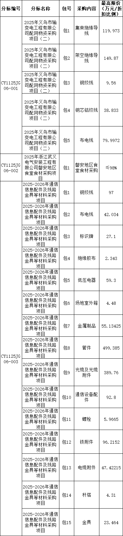2025年市场化项目第二次物资框架公开招标采购(金华)