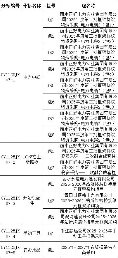 2025年市场化项目第二次物资框架公开招标(嘉兴)