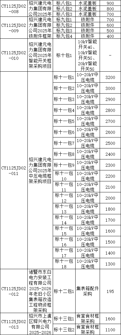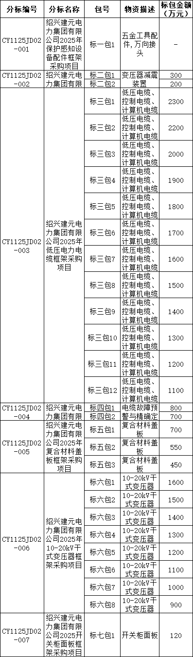 2025年市场化项目第二次物资框架公开招标采购(绍兴)