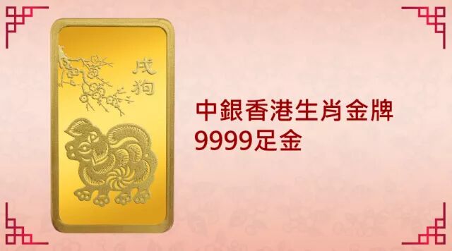喜迎戌狗新年,中銀香港特別推出以9999千足黃金鑄造的生肖金牌,每枚金牌刻有象徵福旺、富貴的金犬剪影,糅合中國剪紙藝術及瑞士精湛鑄金工藝,氣派矜貴,突顯金牌的珍藏價值。