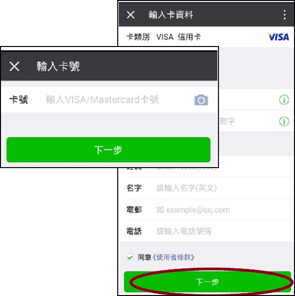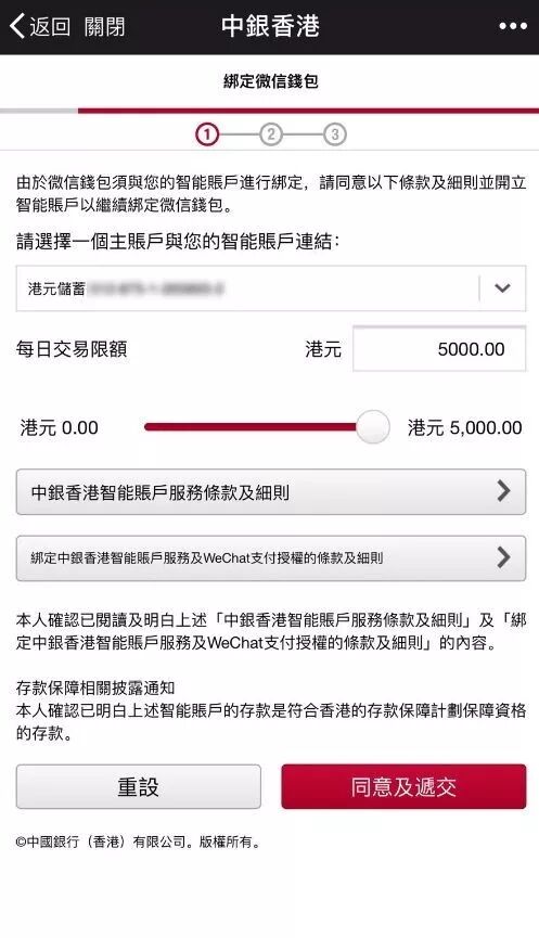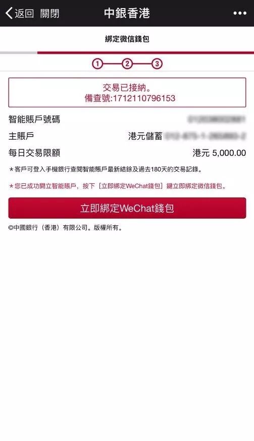 开启「微信」应用程序,点选「我的设定」>「钱包」>「银行卡」>「新增信用卡或者银行户口」>「添加银行账户」>「新增银行户口(中国银行(香港))」,按指示输入相关资料,然后按「下一步」