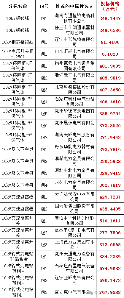 国网辽宁电力2025年第一次物资协议库存招标采购评标工作已经结束,依据《中华人民共和国招标投标法实施条例》、《招标公告和公示信息发布管理办法》对中标候选人公示的规定,现将评标委员会推荐的中标候选人予以公示,公示期3日。投标人或者其他利害关系人若对评标结果有异议的,请在中标候选人公示期间以书面形式(传真)提出。