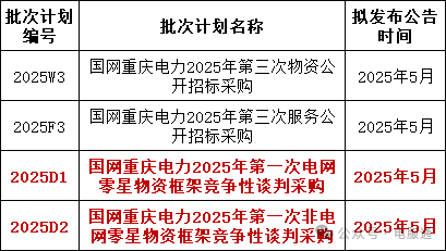 3.南方电网公司2025年配网材料第一批框架招标项目