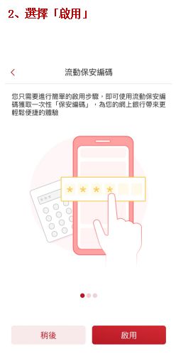 「流動保安編碼」不僅讓資金安全有保障,交易也更加方便、快捷、高效。如您使用指定型號流動裝置啟用「流動保安編碼」,您可同時登記使用於手機上的「生物認證」(「指紋認證」/「Face ID認證」)以: