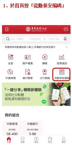 中銀香港手機銀行內置「流動保安編碼」功能,啟用後便無須攜帶實物保安編碼器。