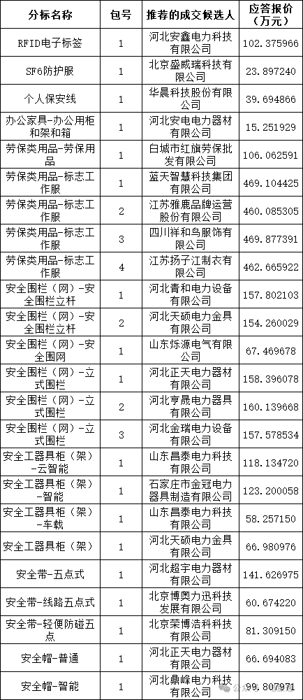 国网吉林省电力有限公司2025年安措类及工装零星物资框架竞争性谈判采购批次评审工作已经结束,现将评审委员会推荐的成交候选人予以公示,公示期1日。应答人或者其他利害关系人若对评审结果有异议的,请在成交候选人公示期间以邮件形式提出。