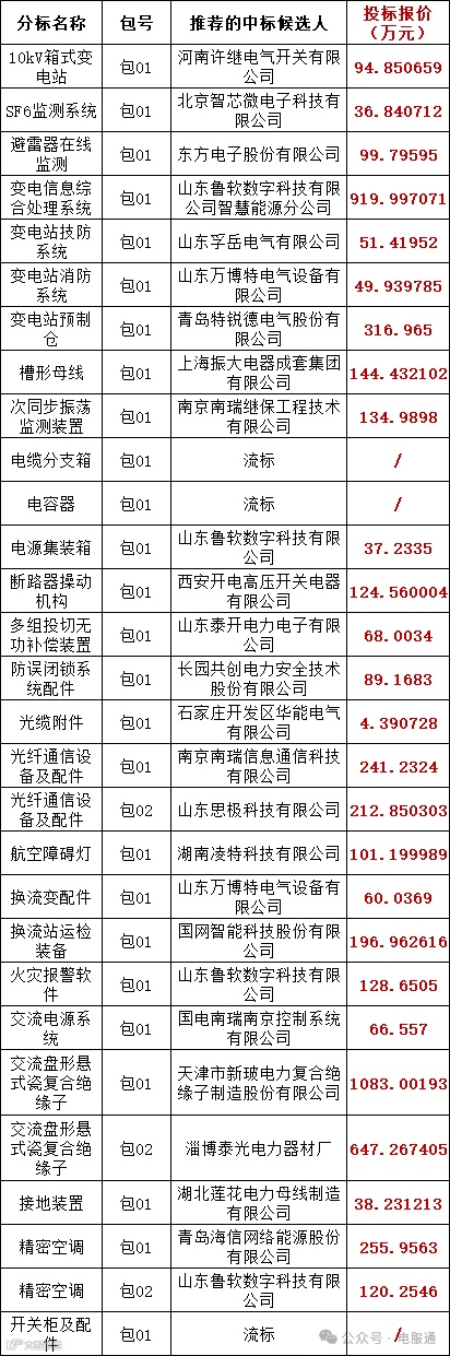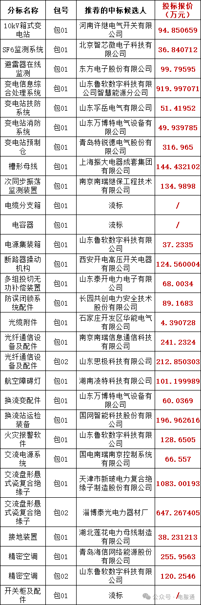国网山东省电力公司2025年第一次物资公开招标采购项目评标工作已经结束,依据《中华人民共和国招标投标法实施条例》、《招标公告和公示信息发布管理办法》对中标候选人公示的规定,现将评标委员会推荐的中标候选人予以公示,公示期3日。投标人或者其他利害关系人若对评标结果有异议的,请在中标候选人公示期间以书面形式(传真)提出。