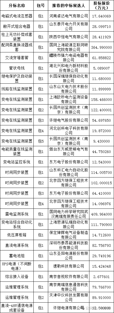 国网北京市电力公司2025年第一次物资招标采购项目评标工作已经结束,依据《中华人民共和国招标投标法实施条例》、《招标公告和公示信息发布管理办法》对中标候选人公示的规定,现将评标委员会推荐的中标候选人予以公示,公示期3日。投标人或者其他利害关系人若对评标结果有异议的,请在中标候选人公示期间以书面形式(扫描件)提出。