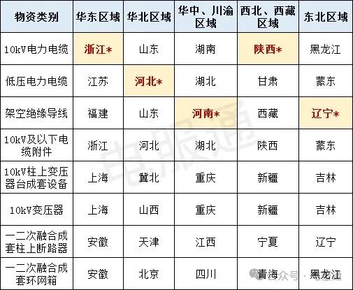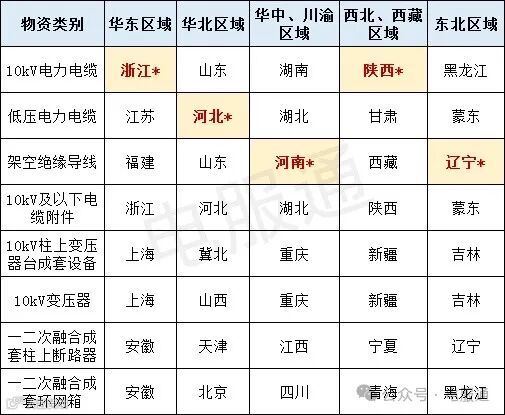 各区域内每个省公司负责1-2个物资品类的集中采购工作。具体分工如下: