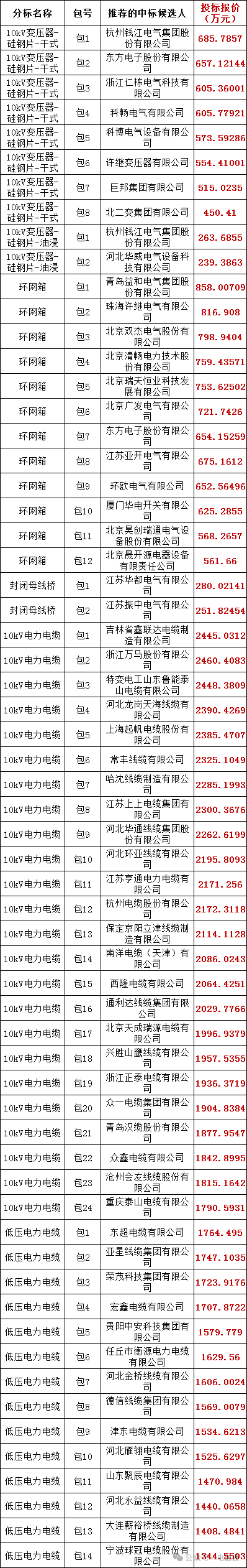 国网北京市电力公司2024年省管产业集中采购第三批物资协议库存招标采购(招标编号:HSWZ2403)评标工作已经结束。依据《中华人民共和国招标投标法实施条例》、《招标公告和公示信息发布管理办法》对中标候选人公示的规定,现将评标委员会推荐的中标候选人予以公示,公示期3日。投标人或者其他利害关系人若对评标结果有异议的,请在中标候选人公示期间以书面形式(邮件)提出。